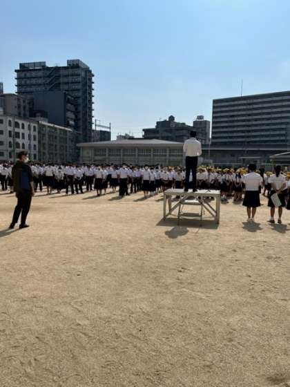 6月19日の朝、合同全校朝会・集会が行われました。