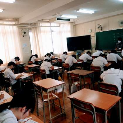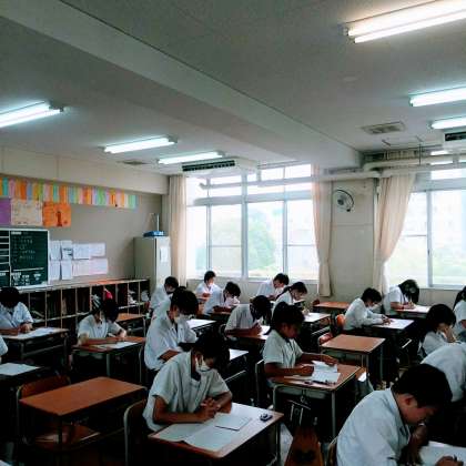 6月21日(水)、7,8,9年生たちは、国語・数学・音楽の3教科のテストに取り組んでいます。皆真剣な面持ちで取り組んでいます。