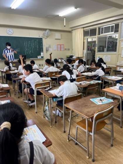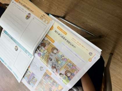 友だちの家に行ったとき、図書館で過ごすときなど、その場に合った発言ができなかったり、マナーを守らなかったりする様子のイラストから、その場にいる人の立場になって、気持ちを考えていきました。相手の立場を考えて行動することの大切さについて学んでいます。積極的に手を挙げて、クラスの友だちに意見を伝えています。