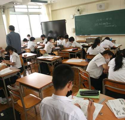 明日のテストに向けて、中学生22名が、9年習熟度別教室にて、自学自習していました。