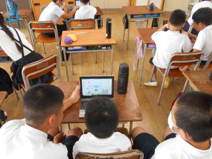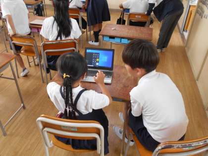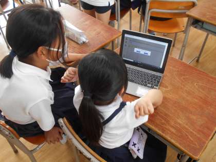 5時間目、1年生は6年生にパソコンの使い方を教えてもらいました。初めてパソコンを使う1年生にパスワードの入力の仕方や、学習ドリルの使い方を、6年生は優しく丁寧に教えることができました。1年生から「すぐにできるようになったよ」「とてもわかりやすかったよ」と言ってもらえ、6年生はとてもうれしそうでした。