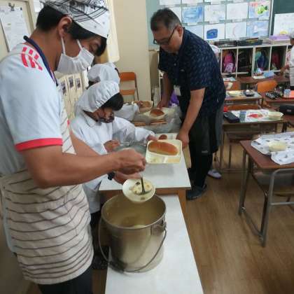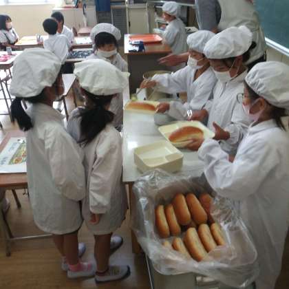 給食の準備の様子(3年1組)