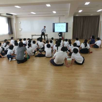 6月28日(水)、交流ホールにて、租税について、「税金のある世界とない世界」というアニメを見て学習しました。