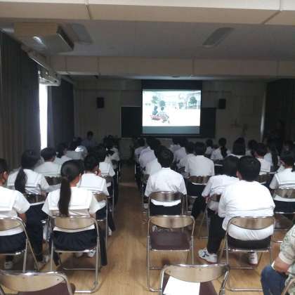 6月30日(金)に多目的室で、非行防止教室が行われました。最初に、犯罪について生徒たちにイメージをきかれました。生徒たちからは、「万引き」「落書き」「暴力」「麻薬」など様々な意見が出てきました。犯罪者にならないための講話や薬物に関する動画視聴を通して、非行の重大さに対する理解を深めました。