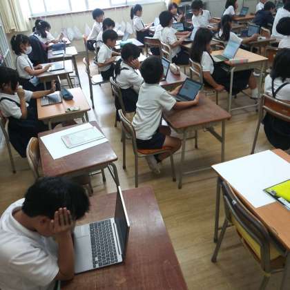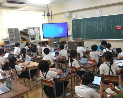 7月3日(月)、3年生は、タブレットでこころの天気の入力方法を学習していました。