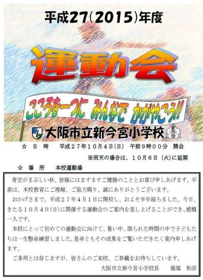 また、運動会当日の予定や注意事項等を記載した手紙「運動会実施に伴うお知らせ(9月30日付)」もよく読んでいただき、円滑に運動会を行えるようご協力いただきたいと思います。