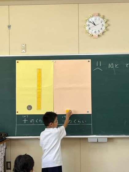 一桁の足し算、引き算の学習から、二桁(十の位)の数の学習へと進んでいます。