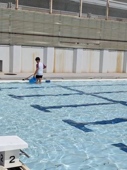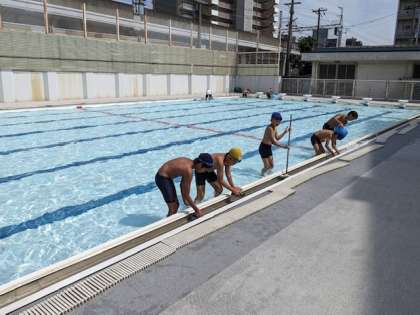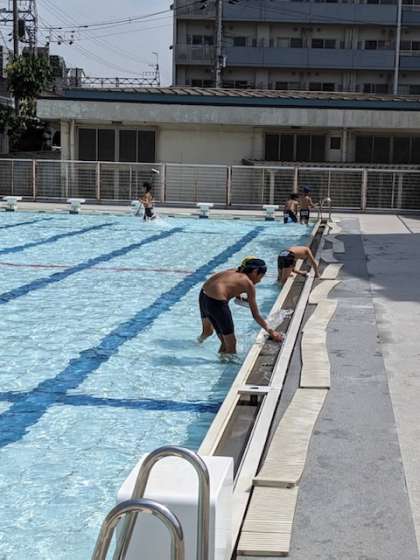 運動委員さん達が、プールの側溝のお掃除をしてくれています。