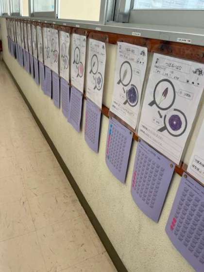 教室の前の廊下に、一人ひとりの観察レポートがあります。