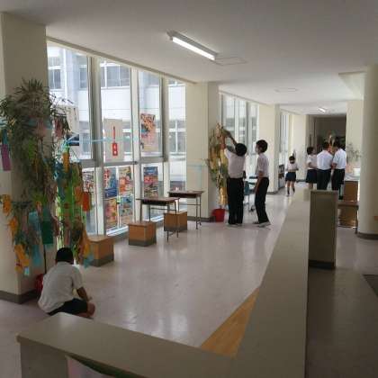 今日の天の川に願いをこめて、短冊を飾っている様子です。