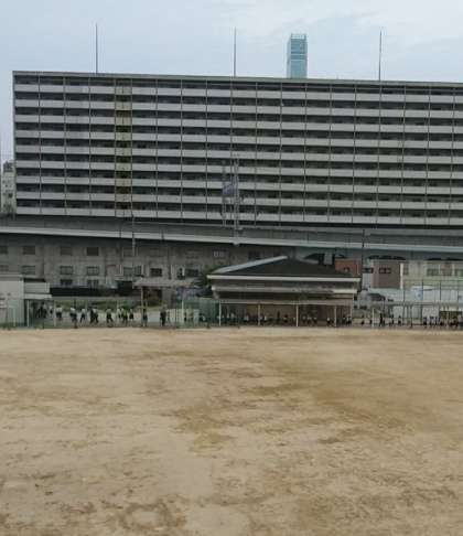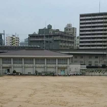 7月7日(金)、全校児童生徒が体育館の左右の扉と正面入口から入場している様子です。