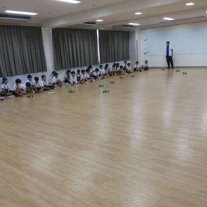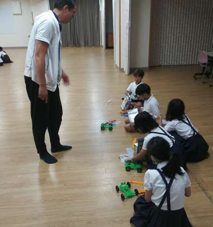 7月11日(火)、交流ホールにて、輪ゴムを使った実験をしていました。