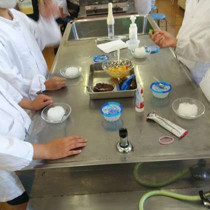 7月11日(火)、1学期最終のクラブ活動です。サイエンスクラブは、小学校の理科室にて、瞬間シャーベッド作りをしました。手芸・料理クラブと国際クラブは、交流料理会として、調理室にて、「パッピンス(あずき かき氷)」を作りました。