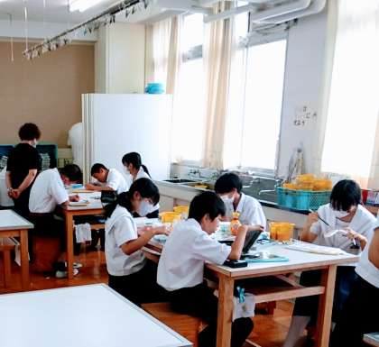 7年生たちは、美術作品として、「仮面」作りをしていました。