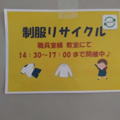 今回もたくさんの保護者の方にご利用いただき有り難うございました。次回は、どんぐり祭の頃に行うそうです。まだ、ご家庭で、眠っている制服がありましたらリサイクルにご協力お願いいたします。
