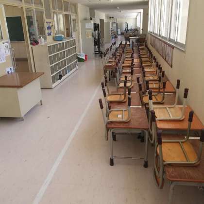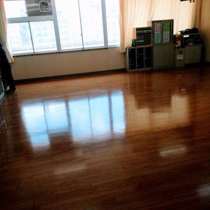小学校の教室の床をピカピカに輝きます。