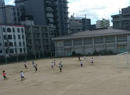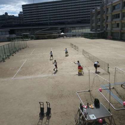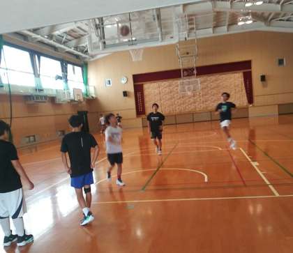 7月20日(木)、午前中、運動場ではソフトテニス部、サッカー部が活動が、体育館ではバスケットボール部が活動しています。