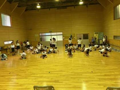 午後は体育館に移動して、焼き板作りと室内オリンピックを行いました。