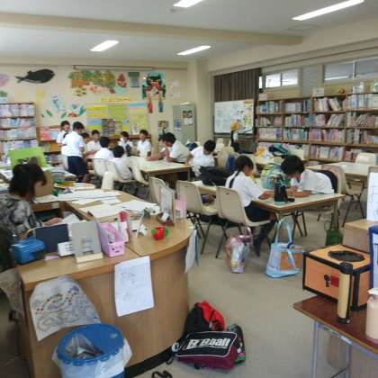 8月2日(水)、プール実習を終えた児童たちが図書館で読書を楽しんでいました。
