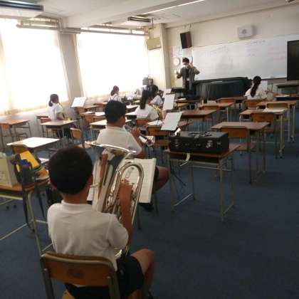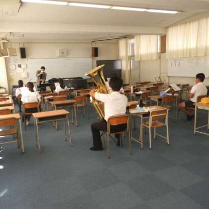 吹奏楽部は、敬老会に向けての楽曲を熱心に練習していました。