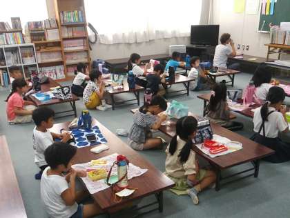 8月8日(火)、児童たちは、学習会に参加し、お昼は、手持ち弁当を食していました。