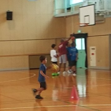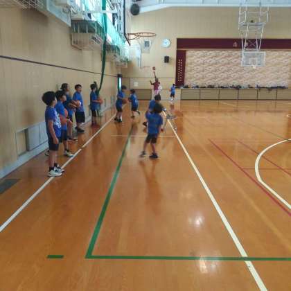 8月18日(金)の午後、新今宮小ミニバスケットボールクラブ員たちが体育館にて躍動していました。