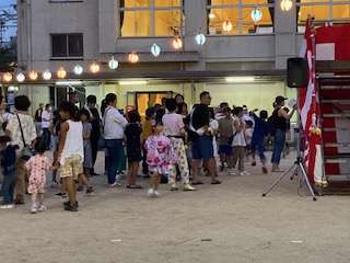 弘治地域盆踊りに多くの子ども達が集まっています。
