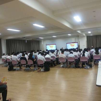 8月22日(火)、交流ホールにて、西成区・住吉区・住之江区の2年目の新任教員約60名の先生方が人権教育に関する研修を受講していました。写真は、「釜ヶ崎のまちについて」の講話を聴く様子です。