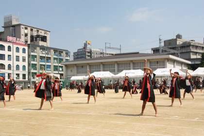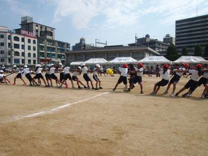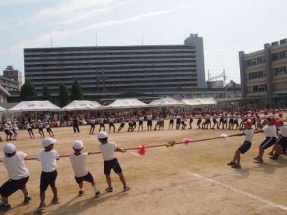 3年生の演技・競技のようすです。変わった形の綱引きは名物になりそうです。