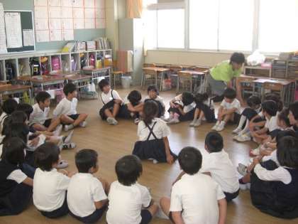 2年1組のお楽しみ会のようすです。教育実習生の木村先生も楽しそうな表情をしています。この一か月間、2年1組のみんなと一緒に過ごし、一緒に学習に励んできました。最後まで笑顔が絶えなかった木村先生には是非とも素晴らしい先生になっていただきたいと思います。一か月の教育実習、本当にお疲れ様でした。