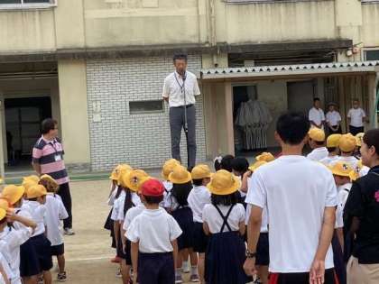 今日の朝会では、教頭先生から3つお話がありました。1つ目は夏休みにがんばったことの作文がとてもよく書けていたことです。楽しかったこと、思い出に残ったことがしっかり書かれていました。2つ目は今週は小中合同プール学習や土曜授業参観があることです。普段のがんばって学習している様子を観てもらえたらと思います。3つ目は、月がきれいに観えるようになってきました。月や星の観察にいい季節になってきましたので、空を見上げてみてはどうでしょうか、といったお話がありました。