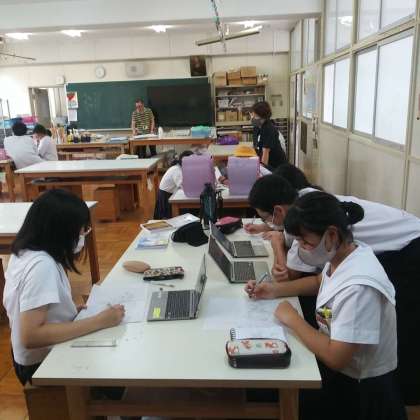 放課後の部活動として、校舎内では、交流ホールで、茶道部が活動し、音楽室で、吹奏楽部が、美術室で、美術部が活動していました。