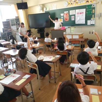 9月15日(金)、2年生は、指導担当の先生から歯ブラシの持ち方や正しい歯みがきのポイントを教わっていました。