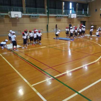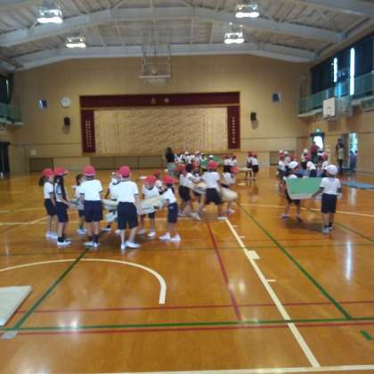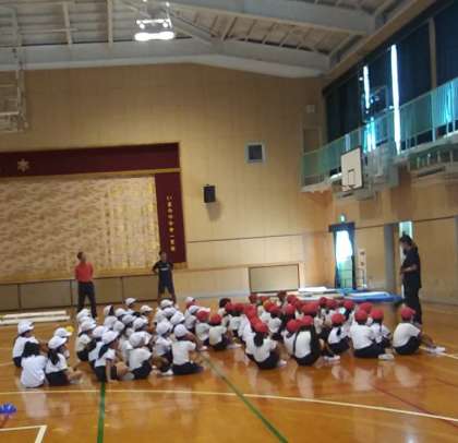 9月19日(火)、体育館にて、1・2年がマット運動の準備と片付けを行っていました。2年生が1年生に準備の仕方や片付けを上手に教えていました。とても仲良く活動することができました。