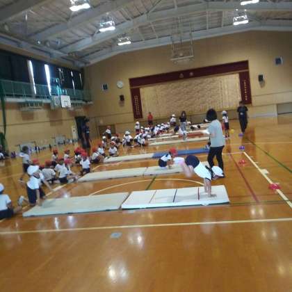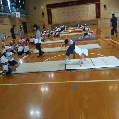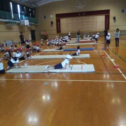 9月19日(火)、体育館にて、1・2年生たちがマット運動を行っていました。手でしっかりと体を支え、いろいろな動きをとても楽しそうに活動することができました。