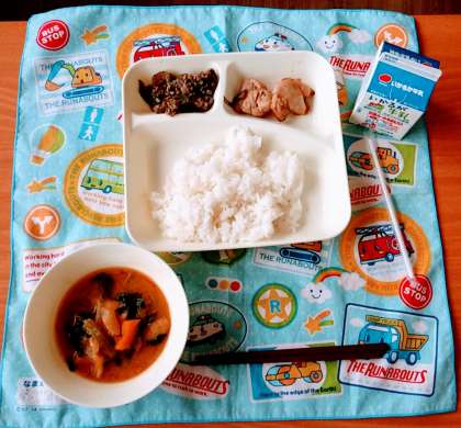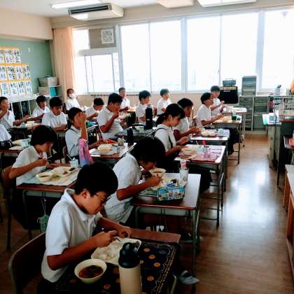 9月21日(木)、今日の献立は、ごはん、鶏肉の照り焼き、かぼちゃの味噌汁、なすのそぼろ炒め、牛乳です。日本でよく食べられているのは、西洋かぼちゃという種類で、いろいろな料理に使われています。このほかに日本かぼちゃ、ペポかぼちゃが栽培されています。主な産地は、北海道や鹿児島県、長野県、茨城県です。6つの食品群の3群に分類され、カロテンを多く含む緑黄色野菜の一つです。