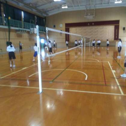 9月26日(火)、体育館にて、9年生は、ゲーム形式でバレーボールに取り組んでいました。
