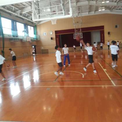 10月2日(月)、9年生男子は、体育館で、バスケットボールのシュート練習をしていました。