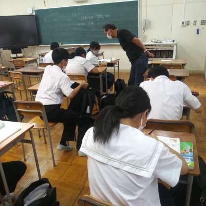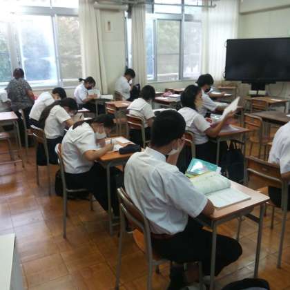 中学生は、中間テスト前学習会として、9年習熟度別教室にて、自学自習をしていました。