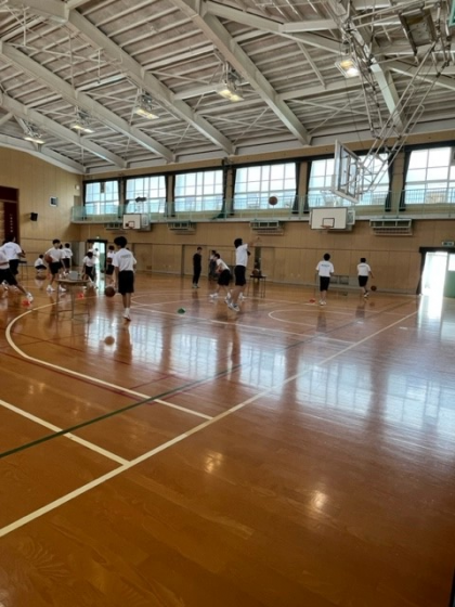 10月10日3限目、8年生の男子は、バスケットボールに取り組んでいました。