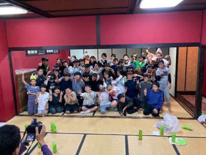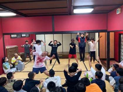 修学旅行一番のメイン行事?のお笑い演芸大会が大広間でおこなわれ、12組の有志がダンスやコントで盛り上げてくれました。