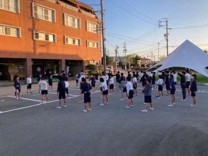 全員元気で、朝の爽やかな空気の中、ラジオ体操をしっかりとしていました。