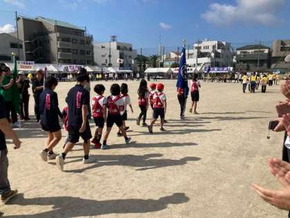 10月15日、秋晴れのなか、第67回西成区民体育レクリエーション大会が成南中学校グランドで行われました。本校からも児童生徒が参加しました。保護者や地域の方々に見守られながら楽しんでいました。