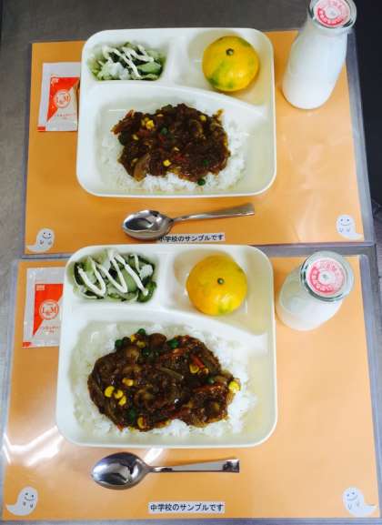 ドライカレーは子どもたちに大人気の献立です。今日は米粉を使ったカレールゥを使用し、小麦アレルギーの子どもたちもみんなと一緒のドライカレーが食べられるように作っています。