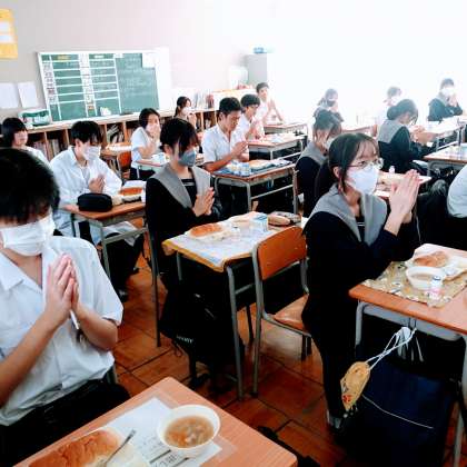 給食の様子(9年1組)