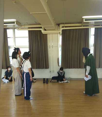 今回は、舞台劇のセリフ合わせや実際に舞台上に立って照明やBGMを入れての練習の様子です。