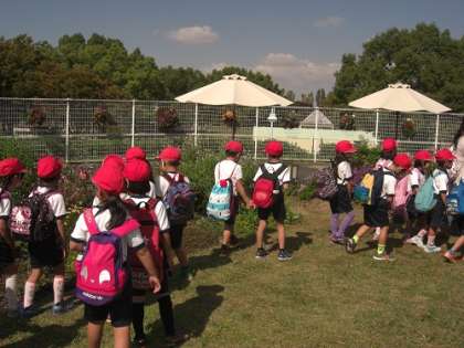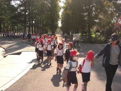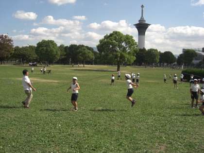 10月14日(水)、1・2年生が秋の遠足に鶴見緑地まで行きました。秋晴れの中、園内を散策したり、草原で大縄をしたりして楽しみました。