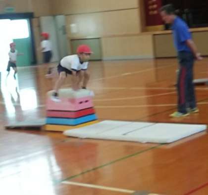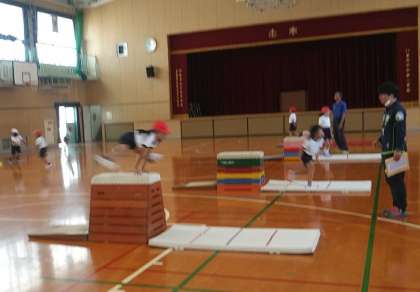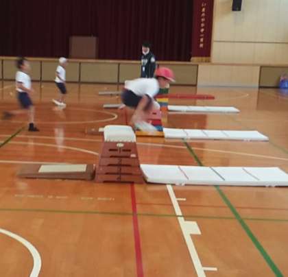 11月2日(木)、体育館にて、跳び箱の技(開脚跳び、抱え込み跳び)に取り組んでいました。