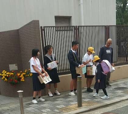 11月7日(火)、児童会・生徒会による赤い羽根募金が始まりました。通用門のところで登校した児童生徒たちがたくさんの募金をしてくれていました。