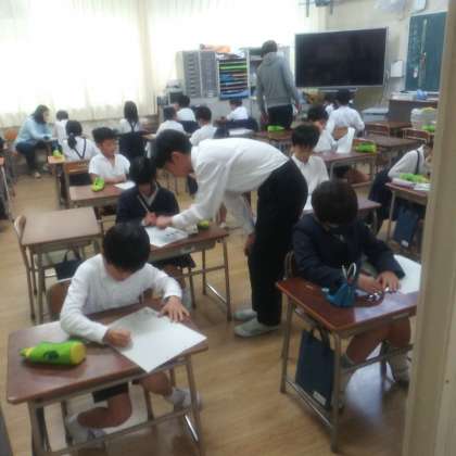 今日は、6名の生徒が新今宮小学校の先生方の仕事を学んでいました。